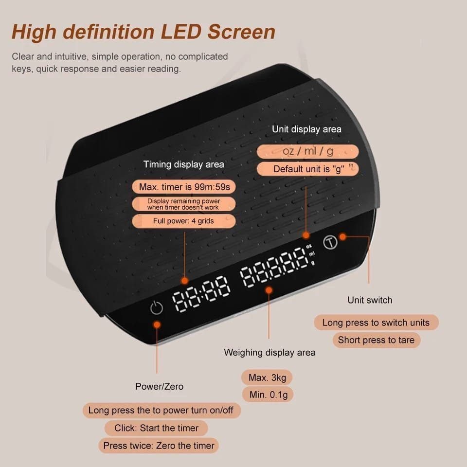 يقيس كمية حبوب القهوة والماء الساخن ووقت الانتهاء في آنٍ واحد لصنع قهوة لذيذة بالتقطير اليدوي